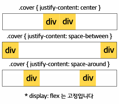 .container { display: flex; justify-content: space-between; }< 대표 속성 >
