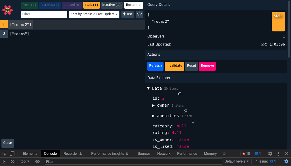 React Query의 모든 내부작업을 시각화하여 문제가 발생한 경우 디버깅 시간을 절약해준다.
