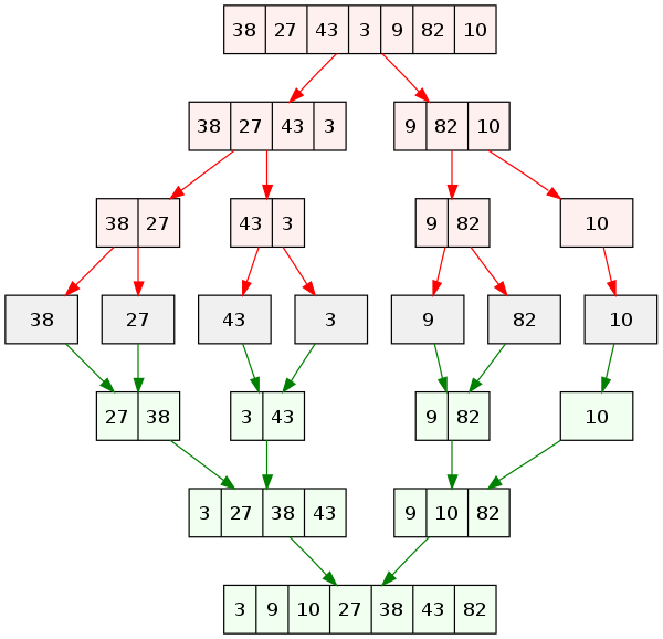 이 알고리즘은 큰 문제를 작은 문제로 나누어(divide) 해결하며, 나중에 작은 문제의 해답을 하나씩 결합하여(conquer) 원래의 문제를 해결합니다. 제가 좋아하는 수학자 존 폰 노이만이 1945년에 개발한 알고리즘이에요 🙃